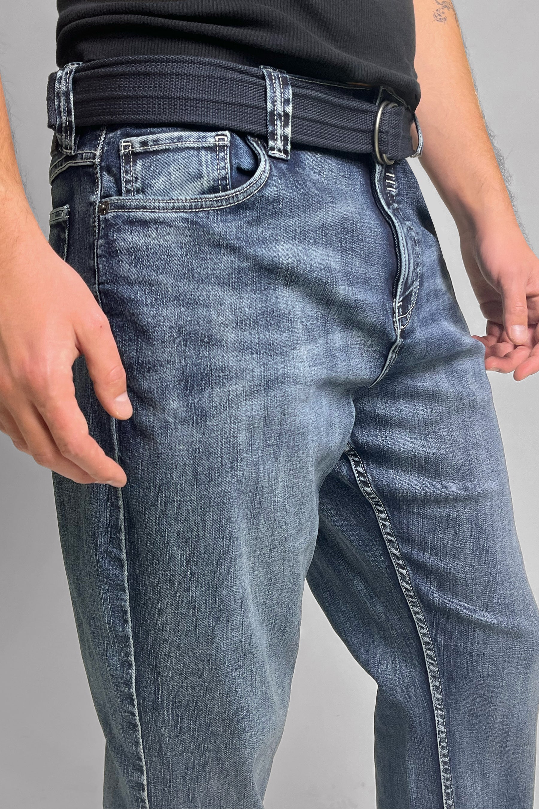 MIKE (3014) - MEN’S RELAXED BELTED JEANS - LIGHT WASH