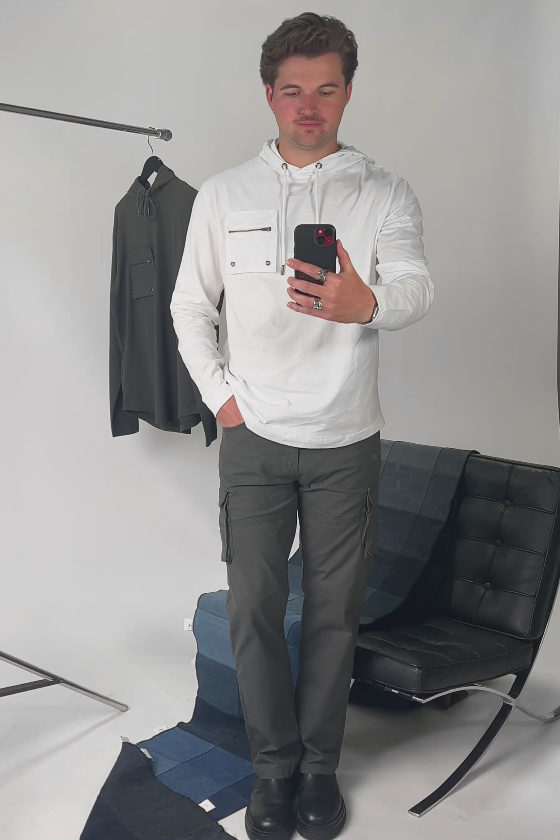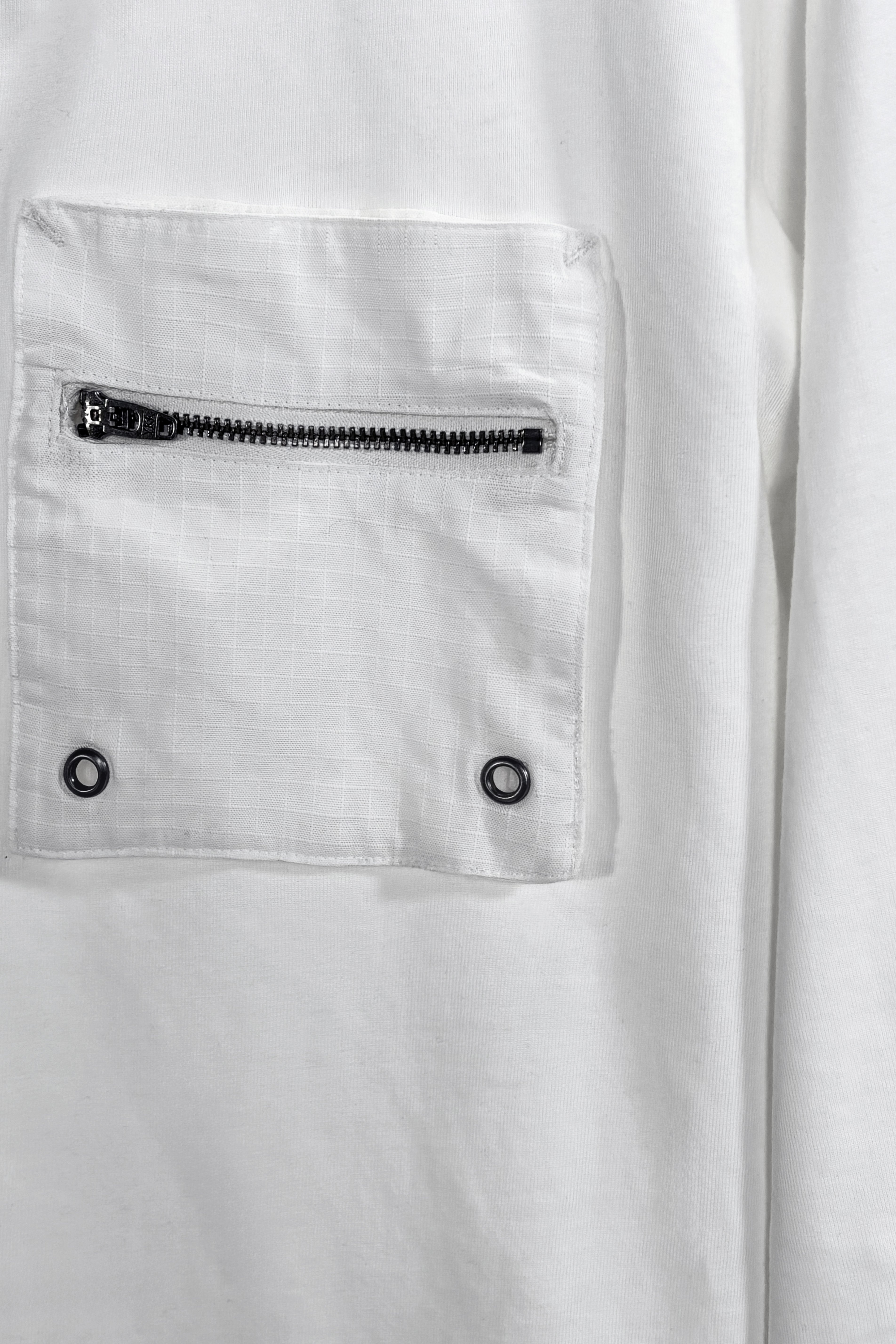 BH-2375 - HOODED LONG SLEEVE WITH CONTRAST RIPSTOP POCKET - OFF-WHITE