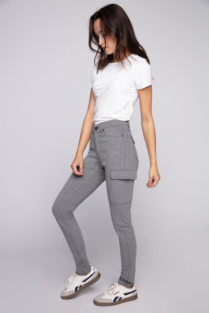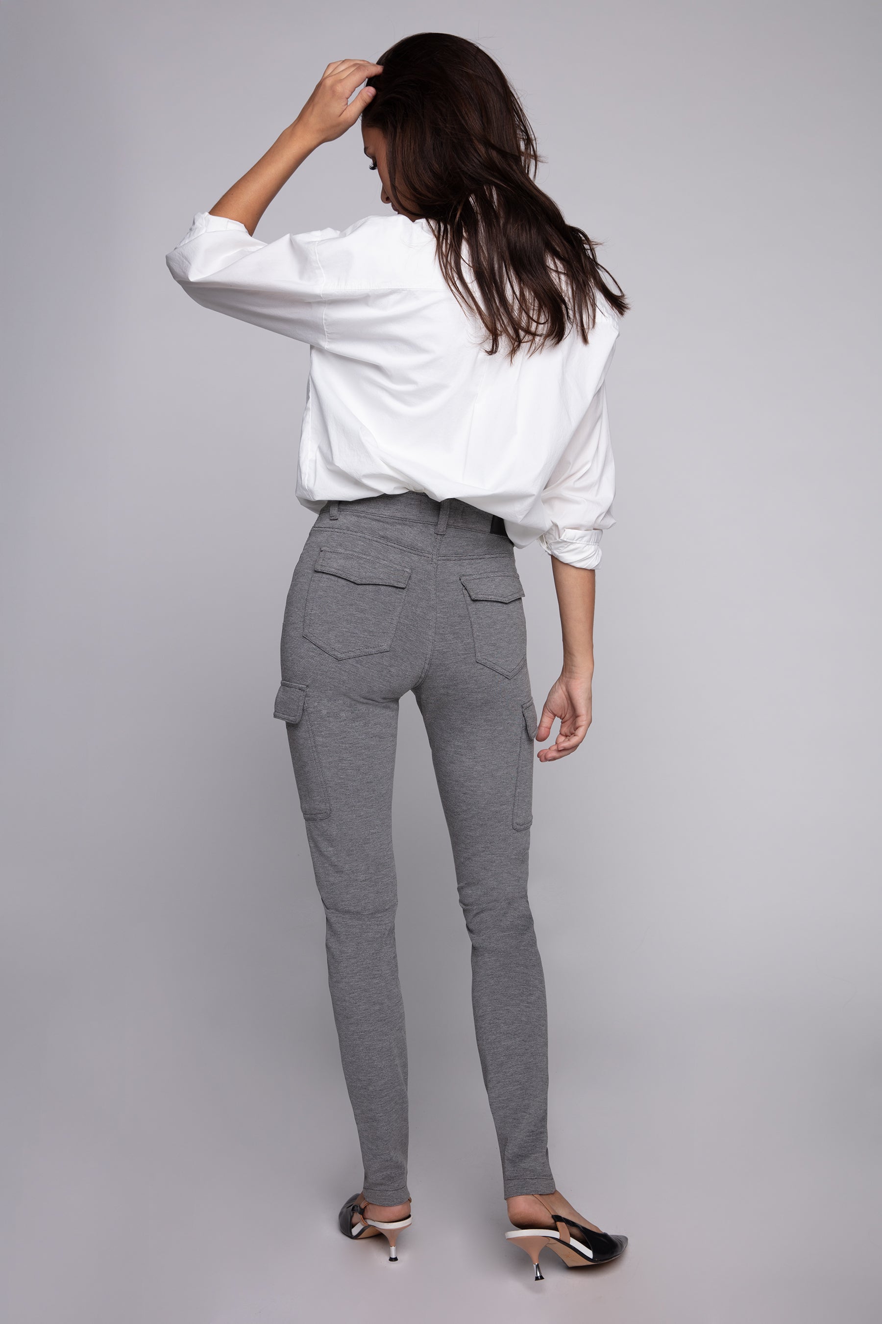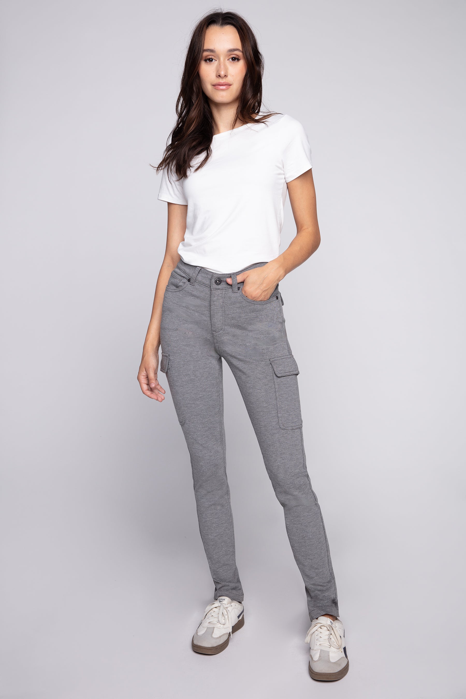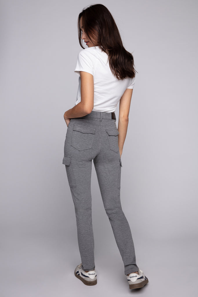 TARA - Ladies Knit Cargo Ponte Knit Jogger - Medium Grey