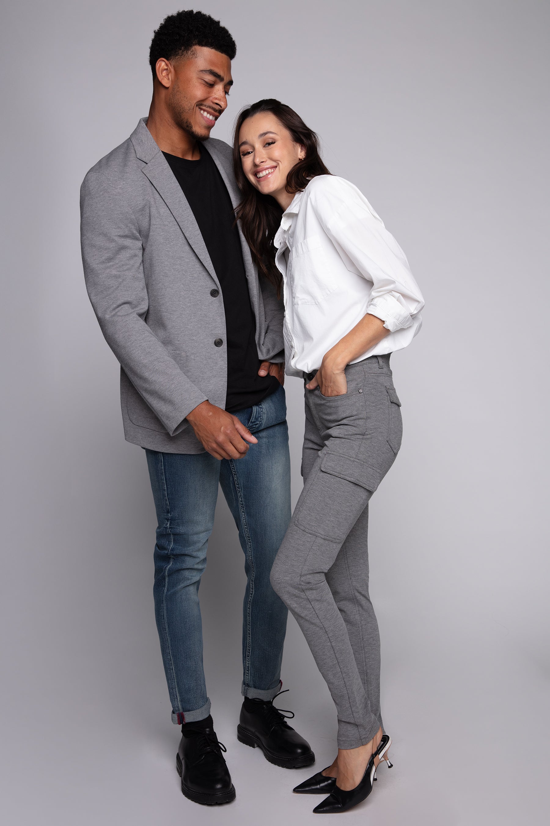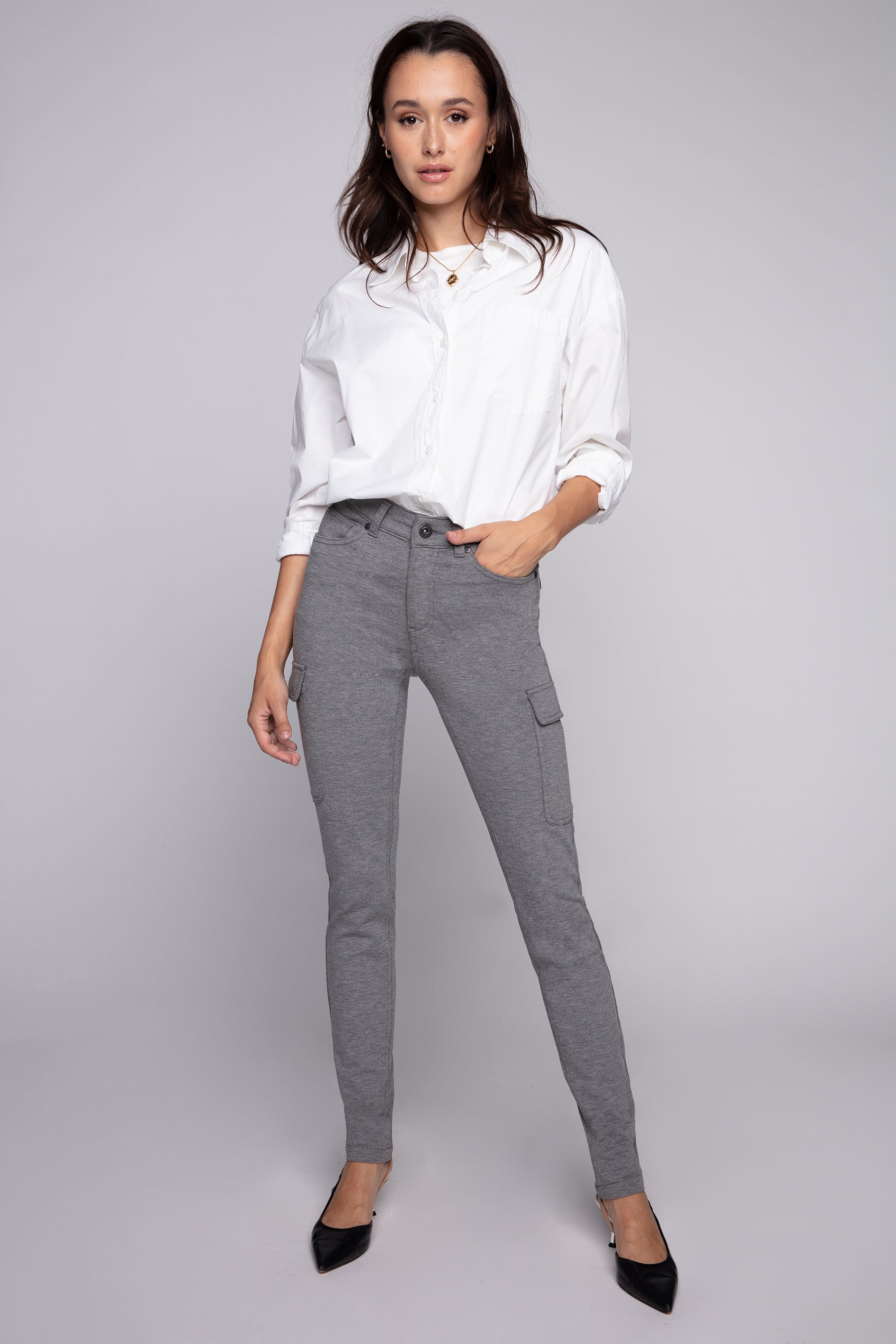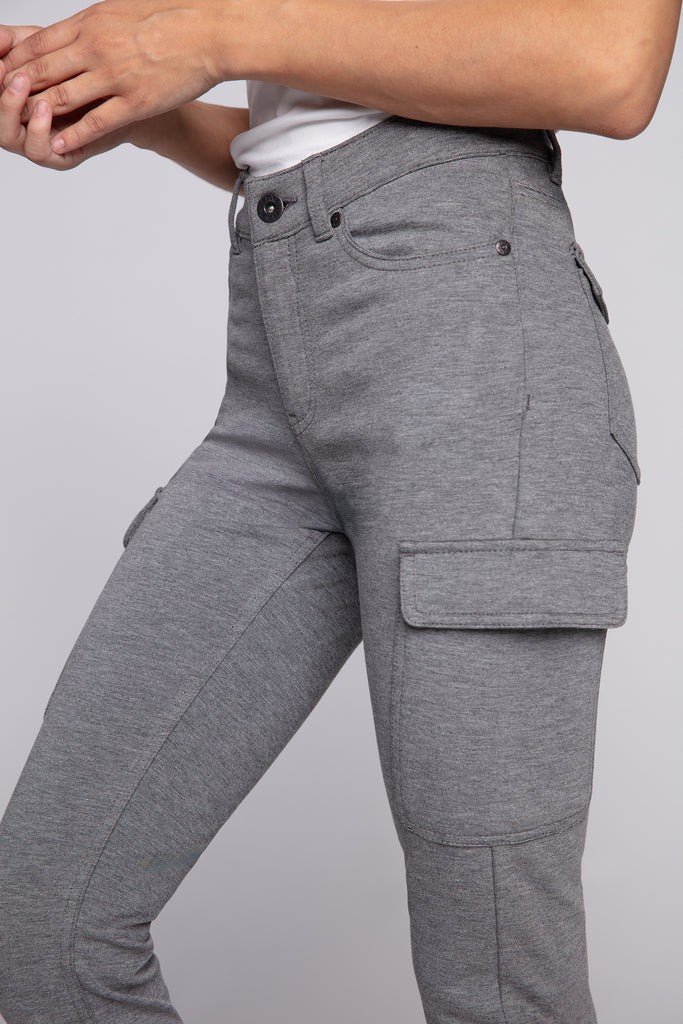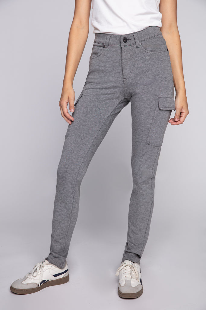 TARA - Ladies Knit Cargo Ponte Knit Jogger - Medium Grey
