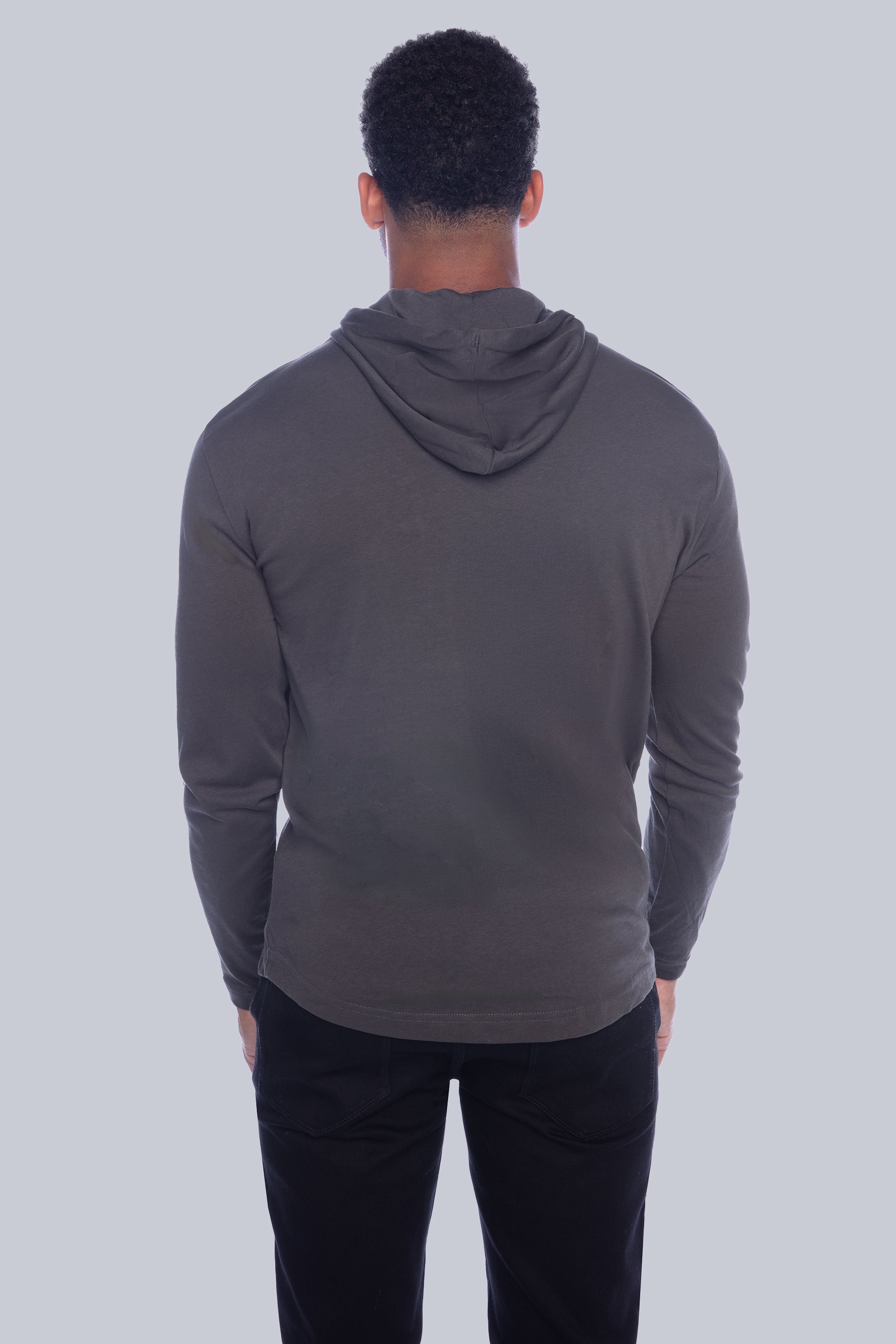 BH-2375 - Long Sleeve Top With Hood & Zip Pocket - Charcoal
