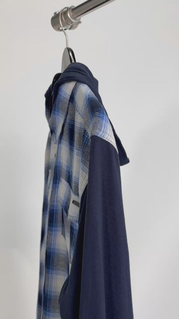 MEN'S NAVY PLAID HOODED FLANNEL SHIRT