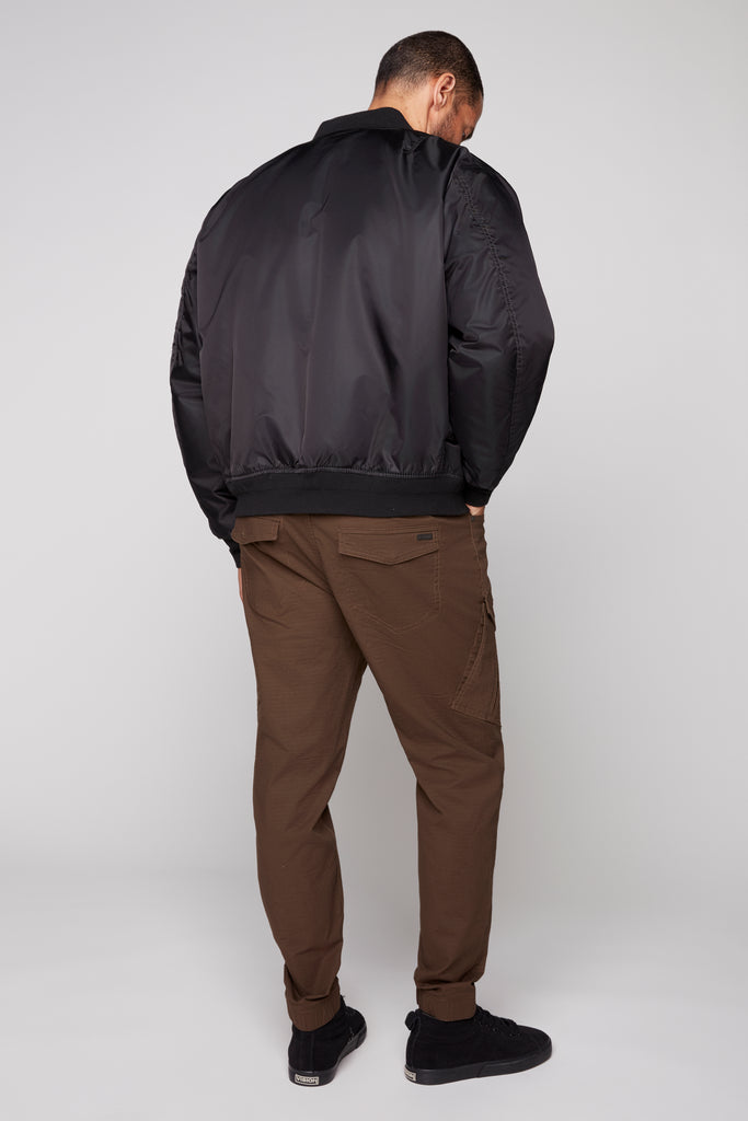 Earthy and versatile, the Cohen-Rib joggers in dark olive deliver a true streetwear utility look. Crafted in stretch ripstop with slanted cargo side pockets, back welt flaps, and an adjustable drawcord waist for comfort. Elastic cuffs lock in the fit, making them ready for skate sessions, city runs, or off-duty days.