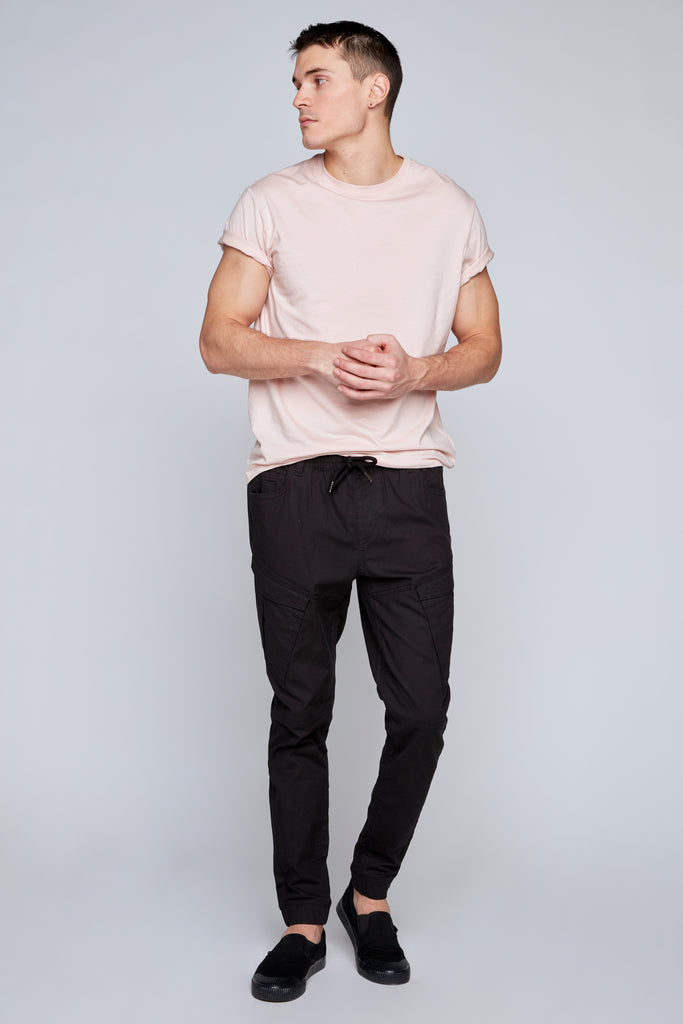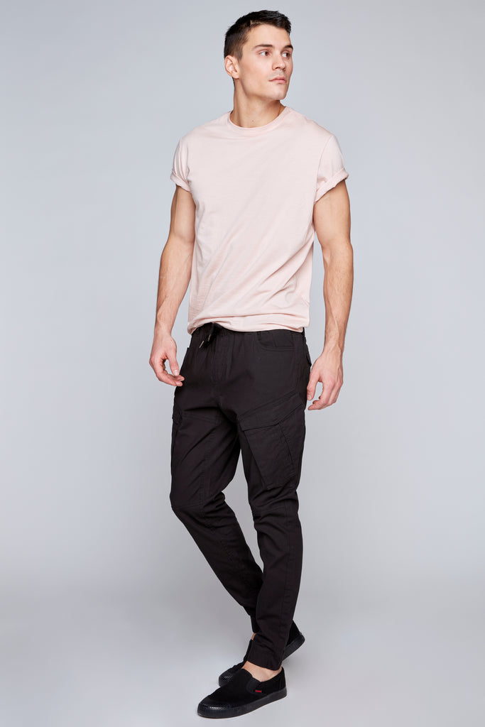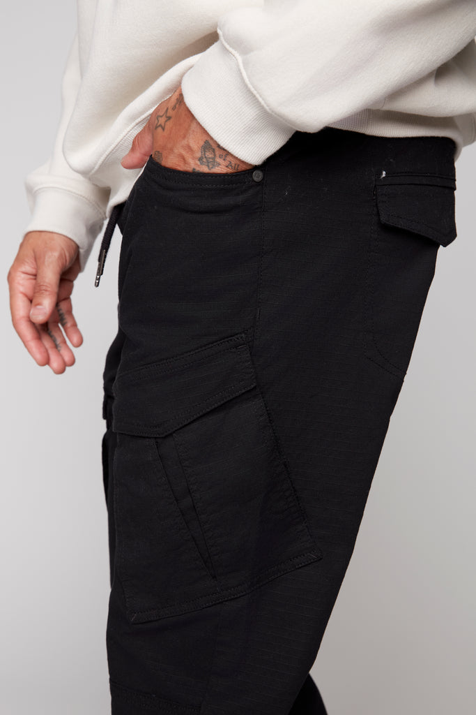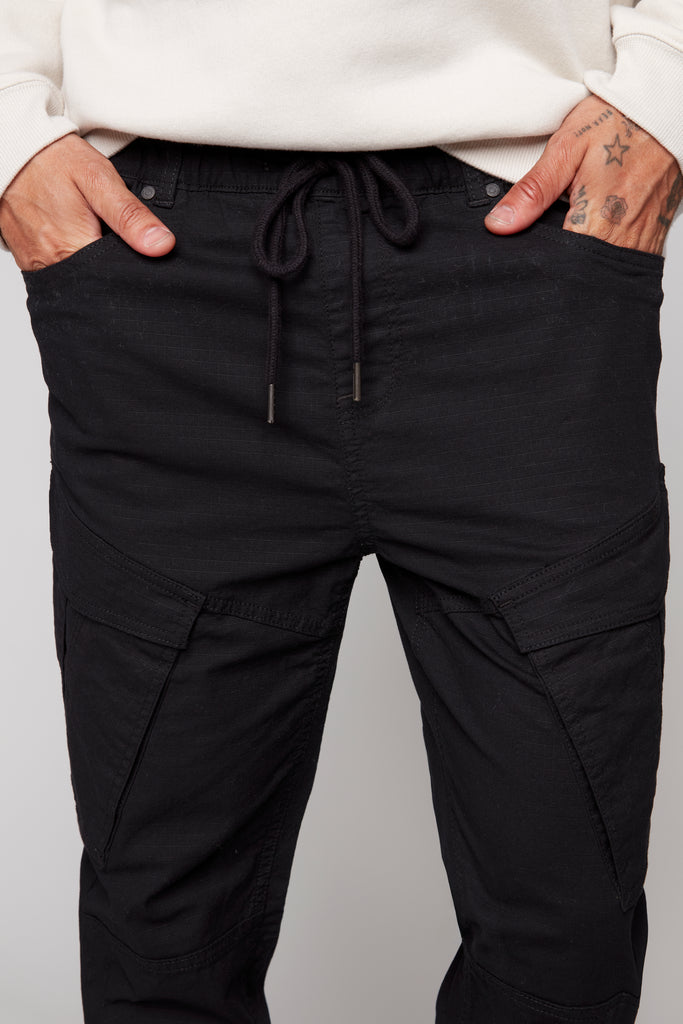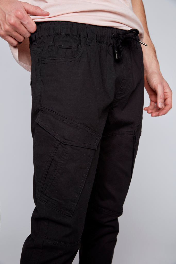 COHEN - RIB BLACK CARGO JOGGER PANTS - BLACK