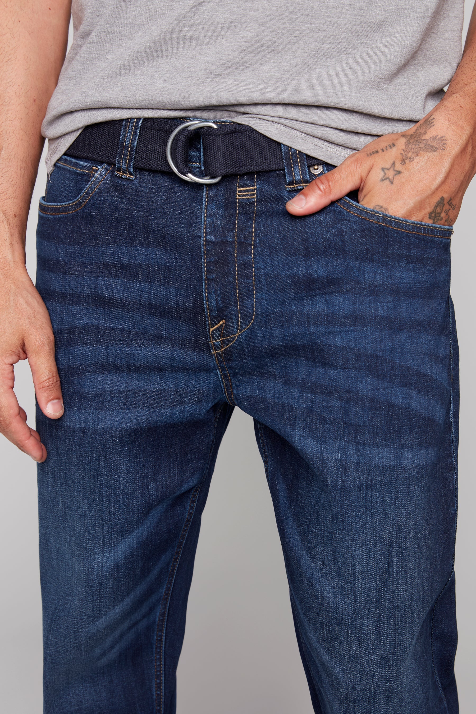 MIKE (3014) - MEN'S RELAXED BELTED JEANS - DARK BLUE