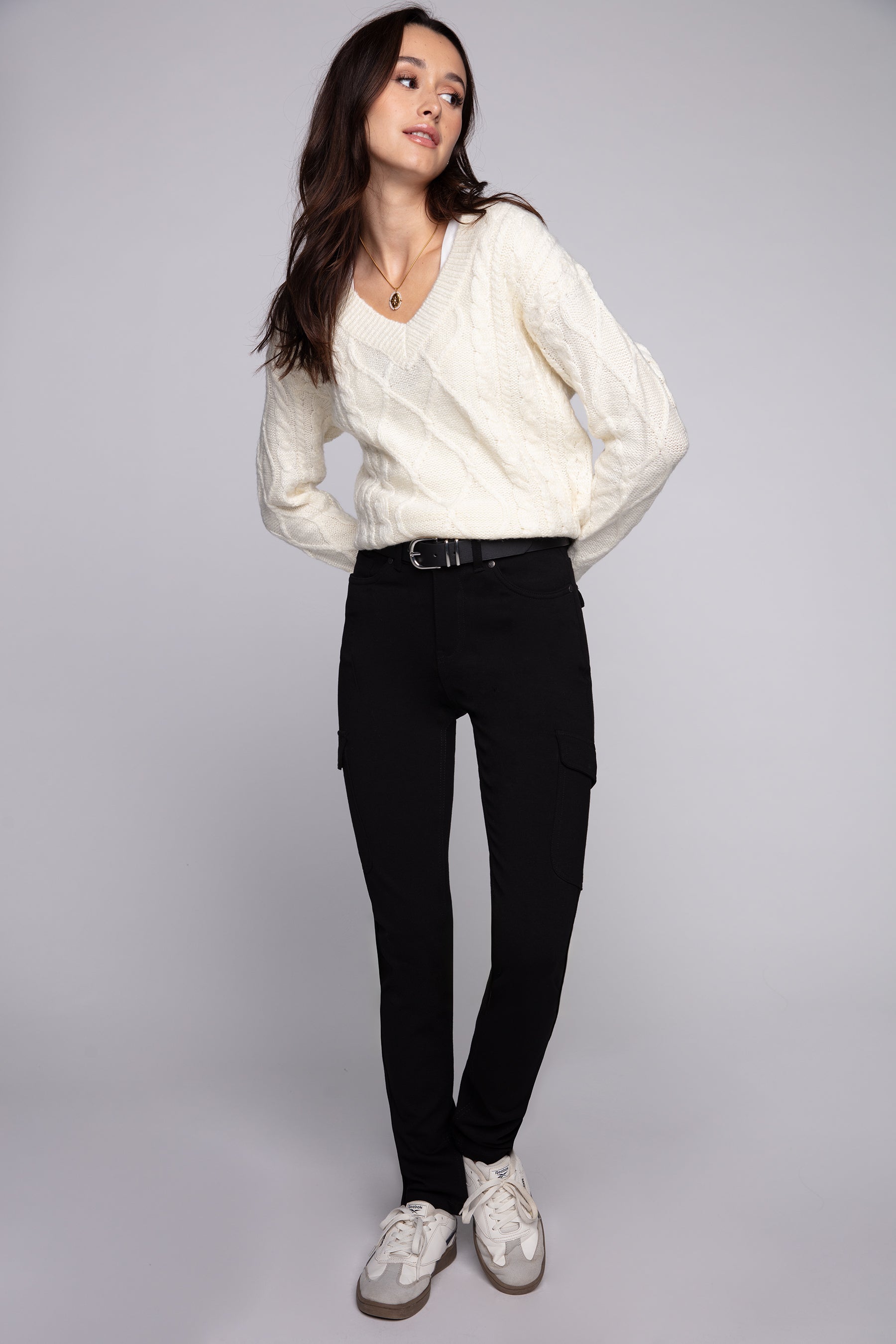 TARA - Cargo en Maille Point de Rome pour Femme - Noir
