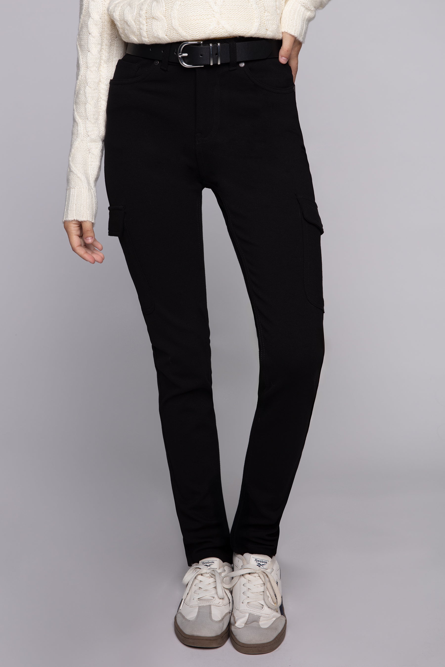 Rehaussez votre style décontracté avec le pantalon cargo en tricot ponte TARA en noir. Conçu pour un confort quotidien avec une touche raffinée, ce pantalon offre un tissu ponte extensible dans quatre directions, des poches cargo, une braguette zippée et des poches arrière à rabat. Sa taille régulière et sa coupe épurée assurent une silhouette moderne et élégante.